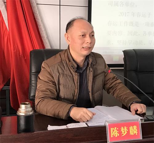 公司董事兼副總經(jīng)理陳夢(mèng)麟和肖立文先后宣讀了《關(guān)于認(rèn)真做好2017年春運(yùn)工作的通知》和《2017年春運(yùn)安全工作實(shí)施方案》。2017年我司春運(yùn)按照“安全第一、服務(wù)至上、保障有力、控收增收”的總體要求,堅(jiān)持早動(dòng)員、早部署,從組織領(lǐng)導(dǎo)、運(yùn)輸組織、安全監(jiān)管、規(guī)范經(jīng)營管理、提升應(yīng)急水平、提高服務(wù)質(zhì)量等八個(gè)方面對(duì)春運(yùn)工作進(jìn)行了重點(diǎn)安排,以確保各項(xiàng)春運(yùn)生產(chǎn)任務(wù)順利完成。為確保春運(yùn)安全,今年春運(yùn)我司將以“安全第一、預(yù)防為主、綜合治理”為方針,嚴(yán)格參運(yùn)駕駛?cè)撕蛙囕v資質(zhì)準(zhǔn)入與管理,加大隱患排查治理力度;以全面落實(shí)企業(yè)安全生產(chǎn)標(biāo)準(zhǔn)化和實(shí)行安全生產(chǎn)經(jīng)營問責(zé)辦法為契機(jī),與安全百日行動(dòng)有機(jī)結(jié)合起來,進(jìn)一步落實(shí)公司安全生產(chǎn)責(zé)任制和建立安全管理長(zhǎng)效機(jī)制,提升公司本質(zhì)安全和保障能力;以北斗衛(wèi)星定位監(jiān)控為主要抓手,實(shí)施科技興安,嚴(yán)查重處違法違規(guī)行為,確保公司春運(yùn)安全目標(biāo)全面實(shí)現(xiàn)。