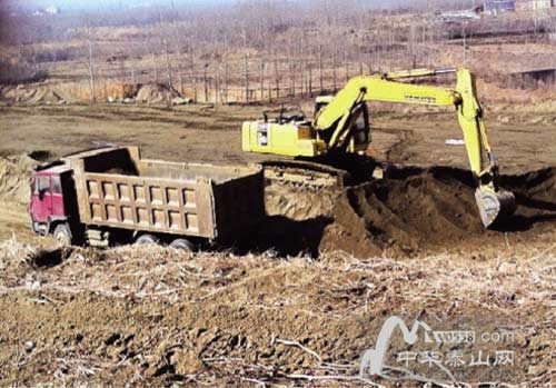 徂徠山脈,高家莊,百余畝丘陵農(nóng)田在挖掘機(jī)等工具的摧殘下,變的滿是石料,坑洼難行,“光這邊就有100多畝地,都在采石、選鐵礦等過程中被破壞了,土都被車運(yùn)走賣掉了?!备呒仪f一村民告訴記者說。記者現(xiàn)場(chǎng)探訪發(fā)現(xiàn),目前仍有挖掘機(jī)在現(xiàn)場(chǎng)作業(yè),將農(nóng)田里的土挖掉運(yùn)走。