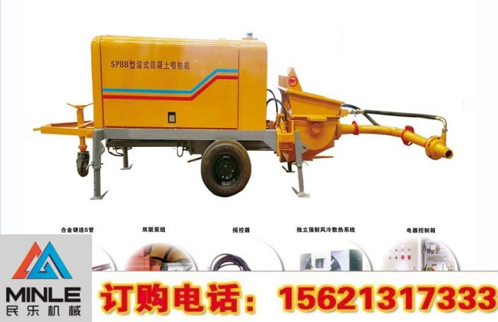 濕噴機(jī)是將攪拌好的混凝土通過輸送泵送至噴嘴,且在輸送泵的出口處加以壓縮空氣,讓物料和空氣在管路中得以充分rong合,使得后的物料更加均勻。且在噴嘴處加速凝劑,讓物料能夠快速凝固,回彈率。并且材料的配合易于控制,工作效率較干噴高。